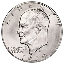 - Eisenhower Dollars (1971–1978 Proofs): Frank Gasparro’s design showing Eisenhower and the eagle landing on the moon.